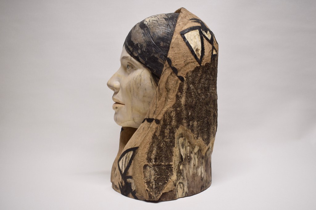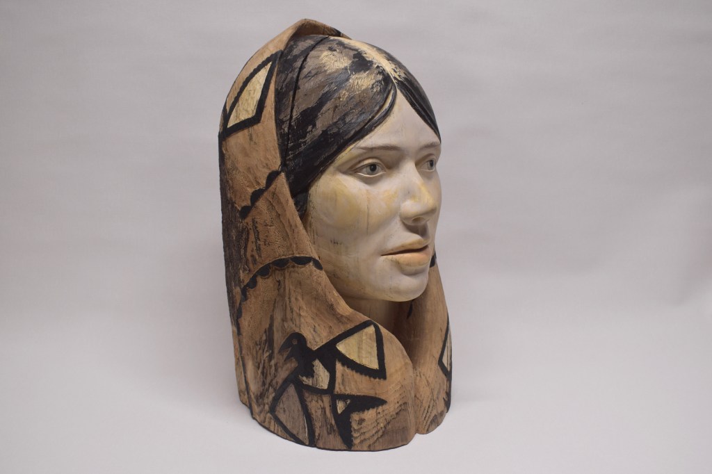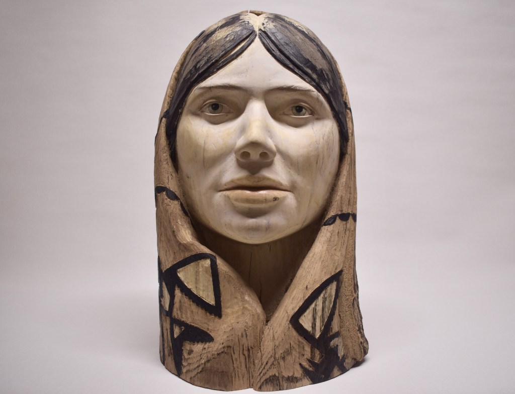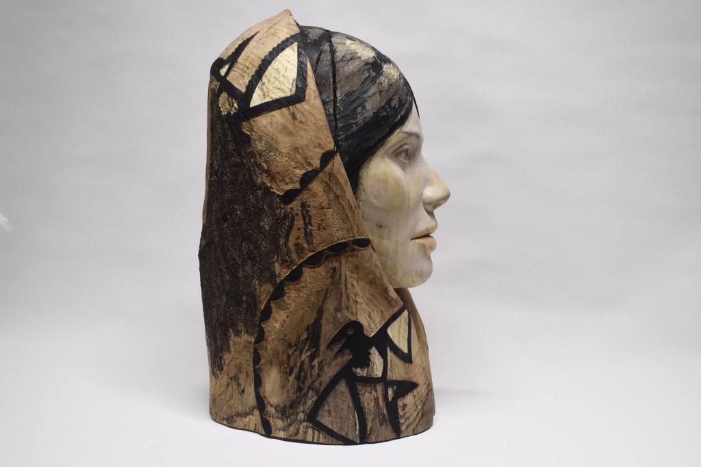 “A Young Lady with Crow Blanket” is an imaginary portrait informed by historic photos and traditions. This work is an attempt to capture the sense of mystery emblematic of a past culture while at the same time exploring connections and influences that are interpreted and expressed through modern eyes. My hope is that this young lady may convey something of that sense of mystery and piece found in ordinary moments of reflection while simultaneously hinting at something both more substantial and elusive.